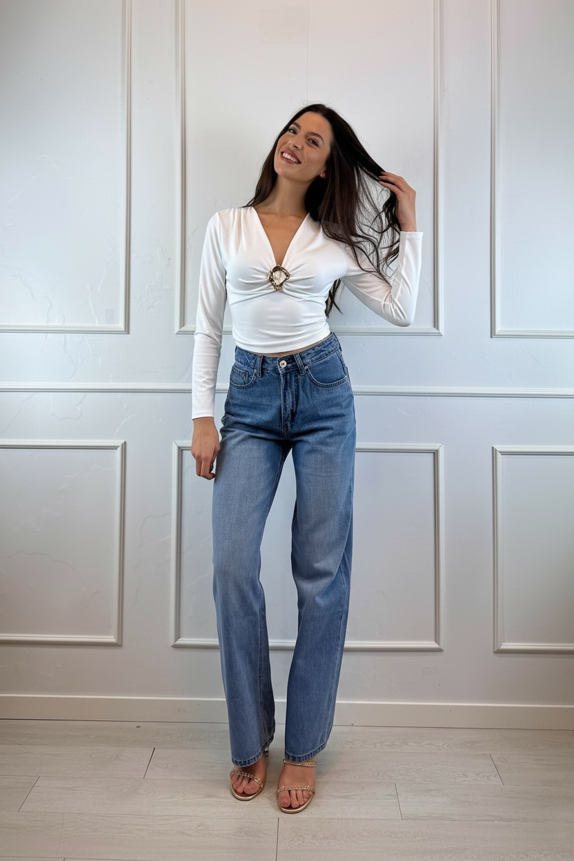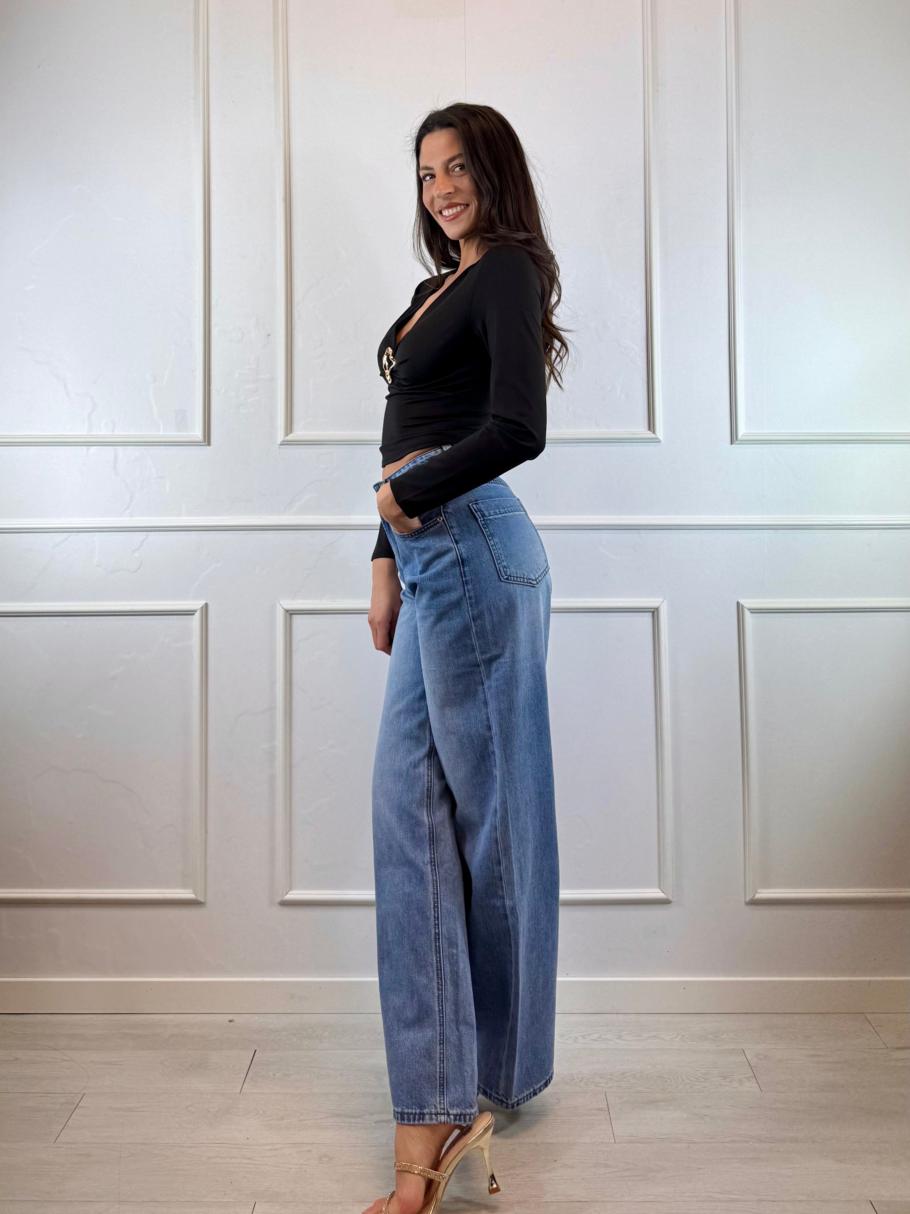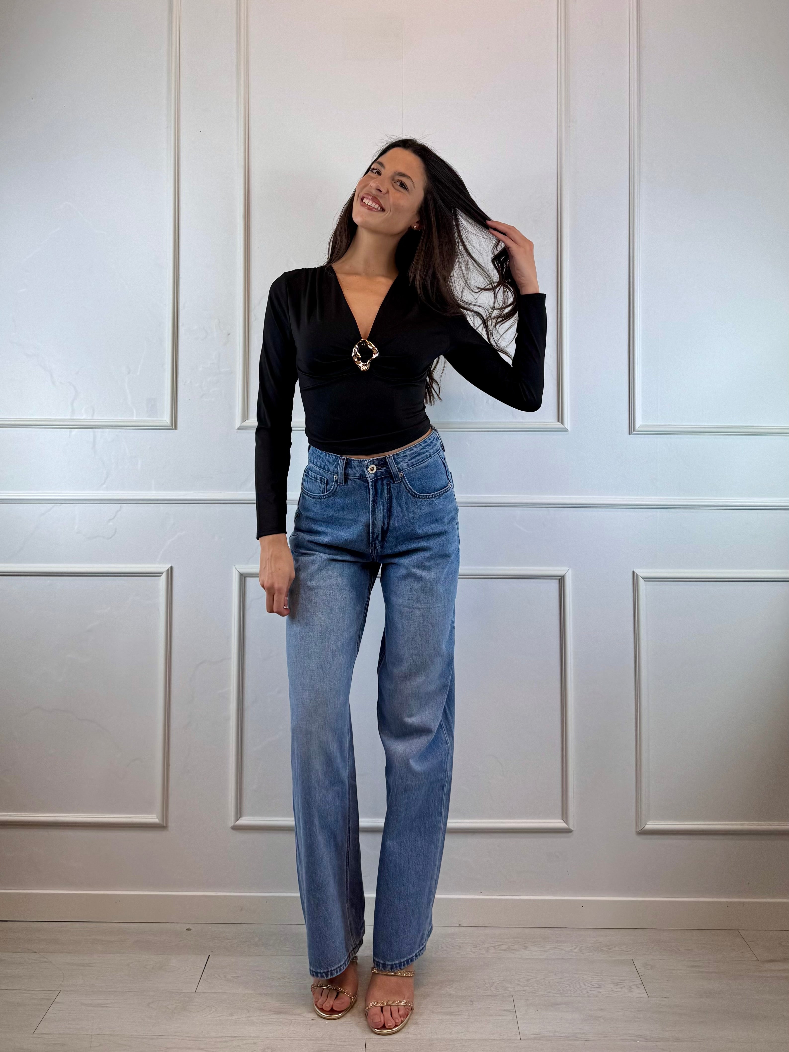 Maglia lycra scollo V fibbia