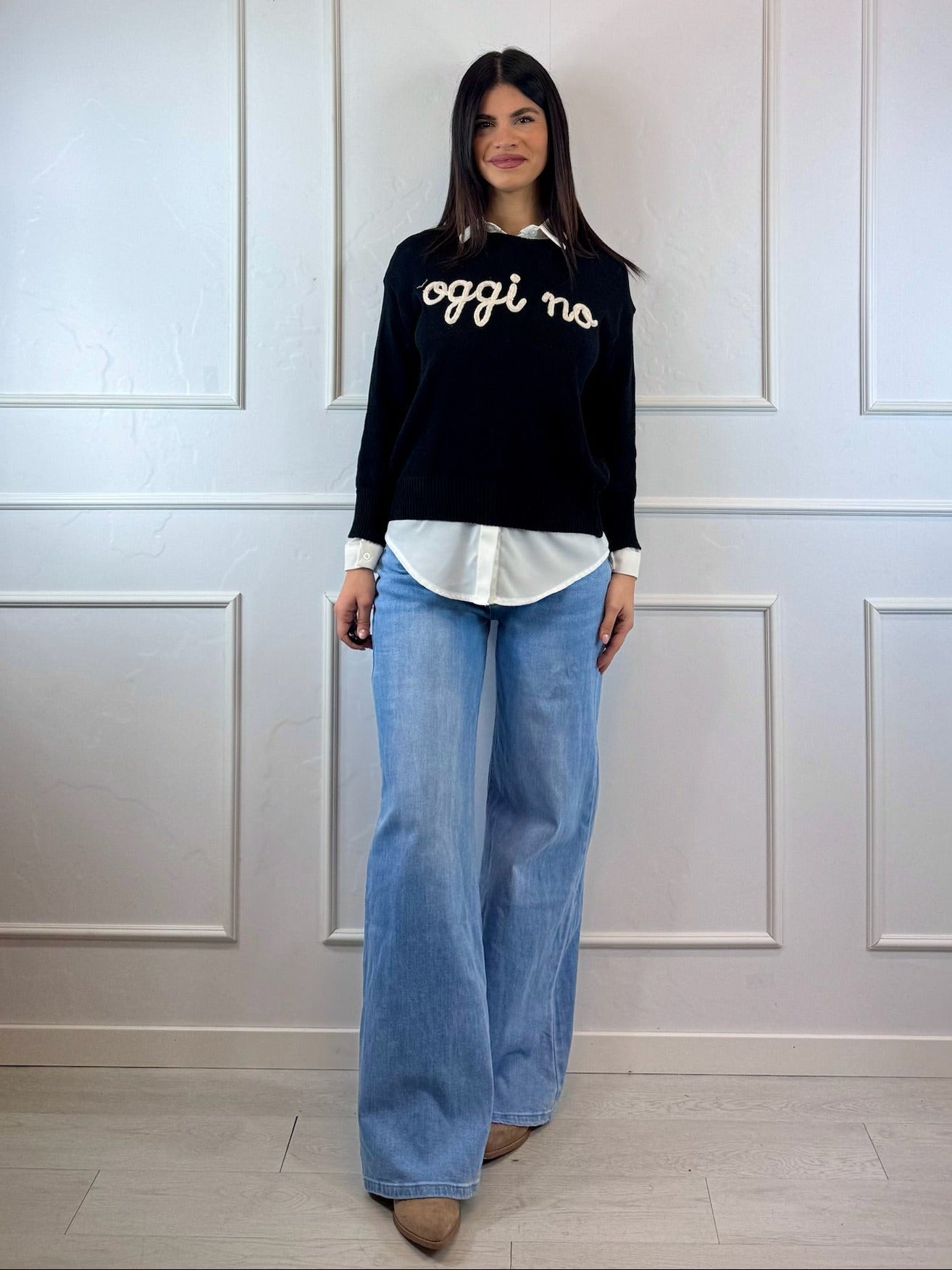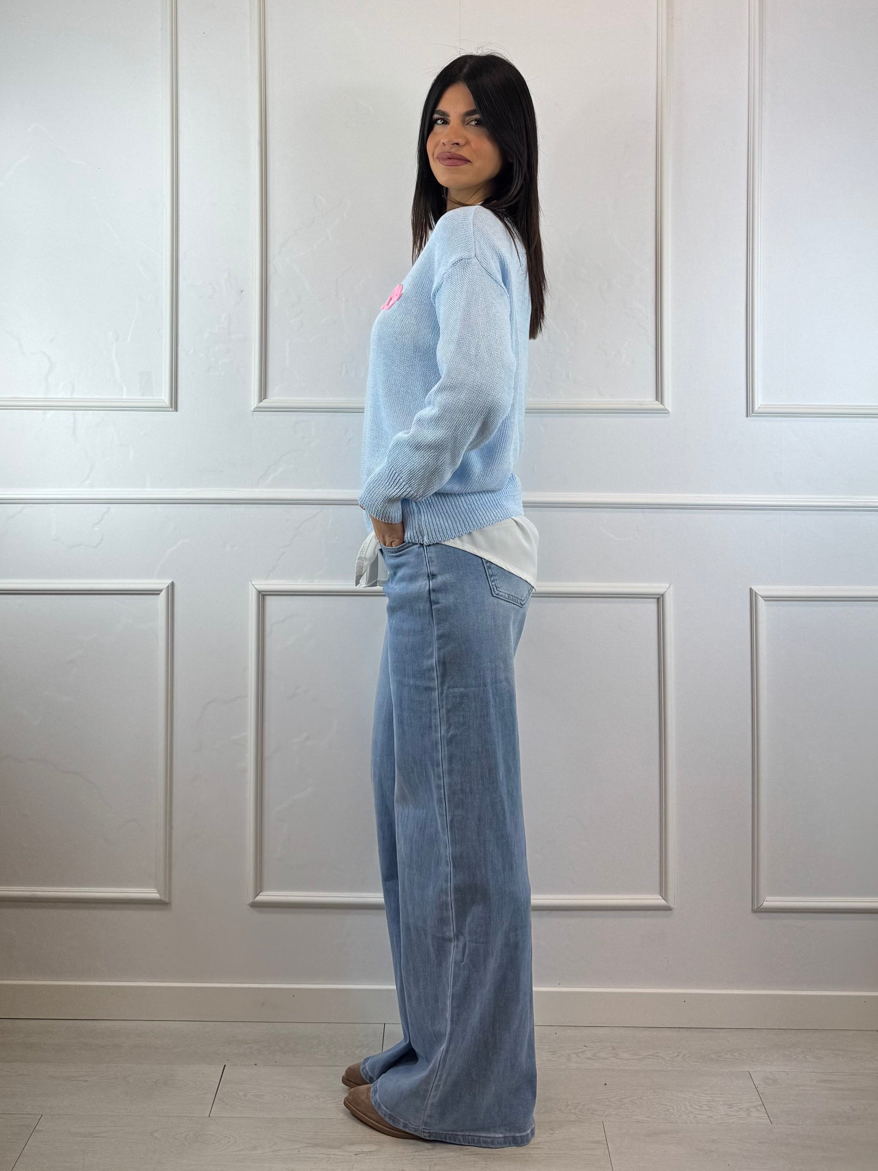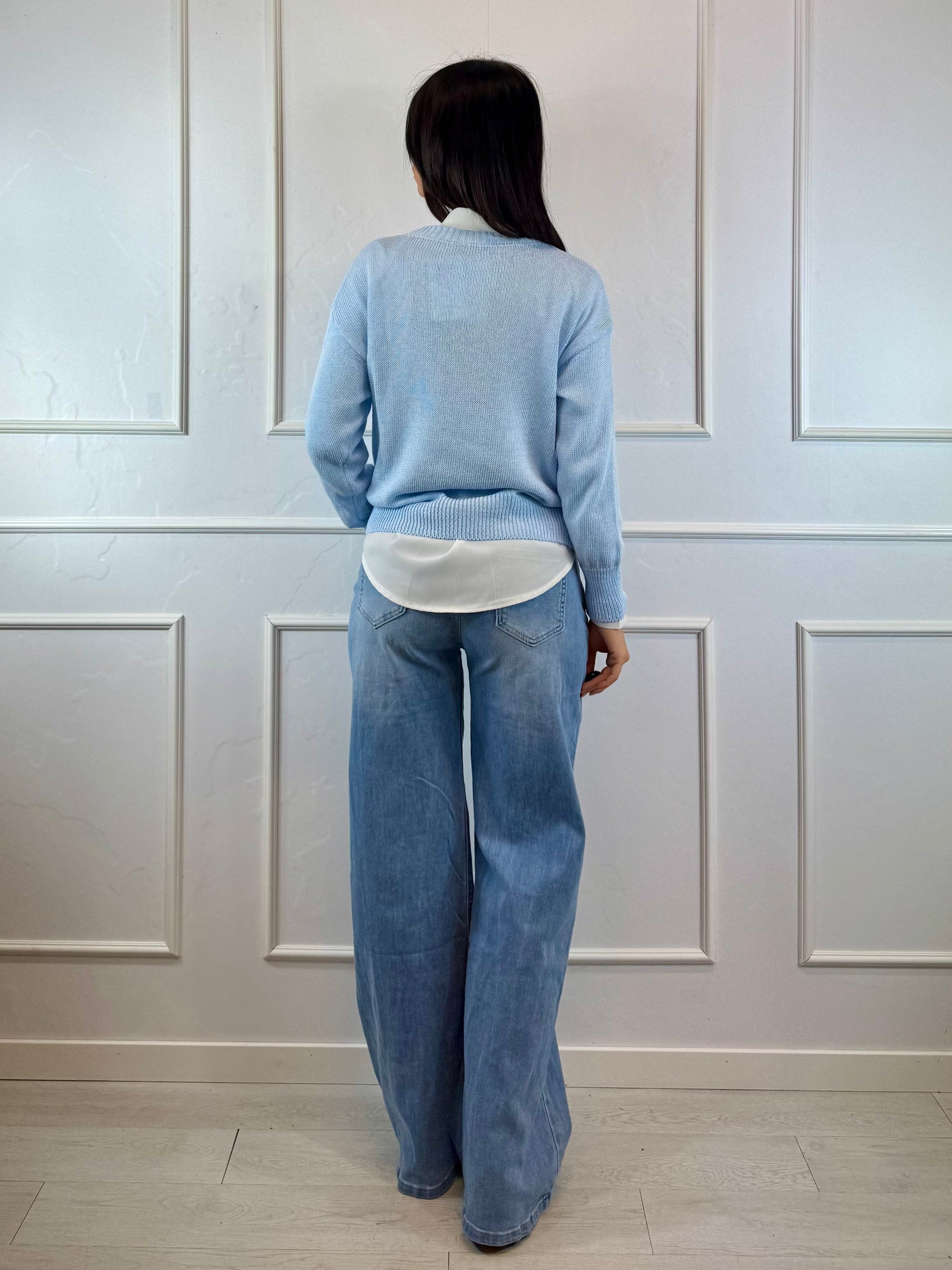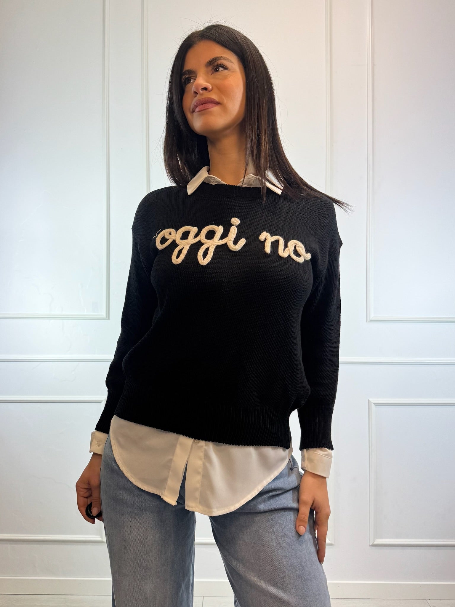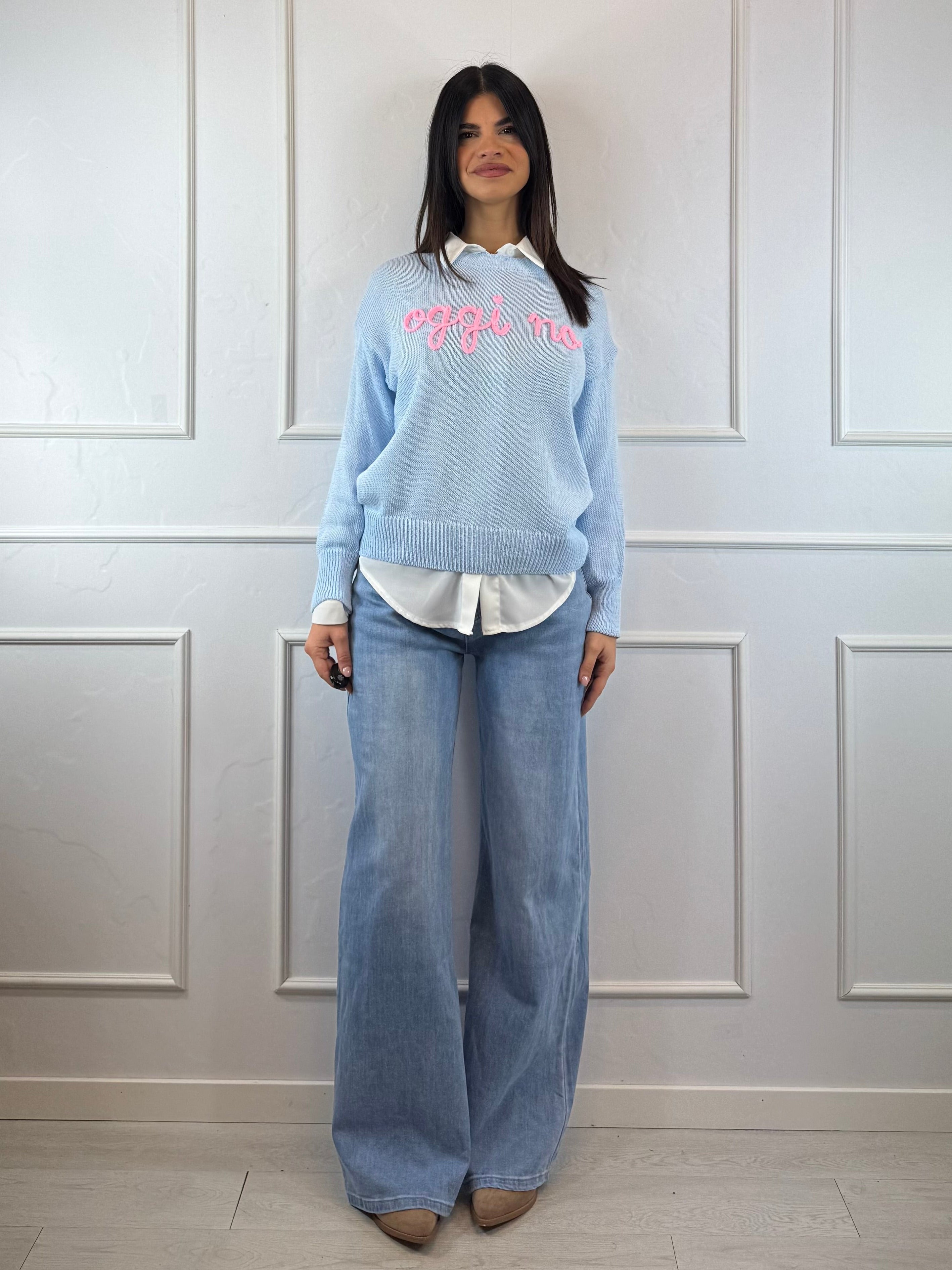 Maglioncino casual dallo stile ironico e contemporaneo, perfetto per look quotidiani comodi ma curati.