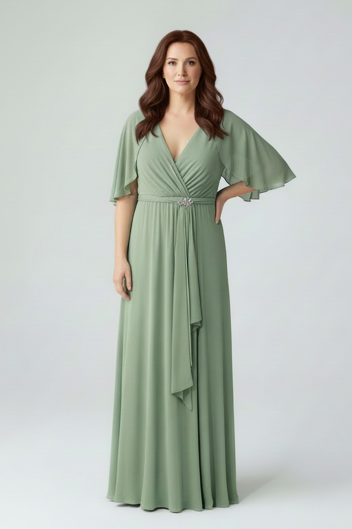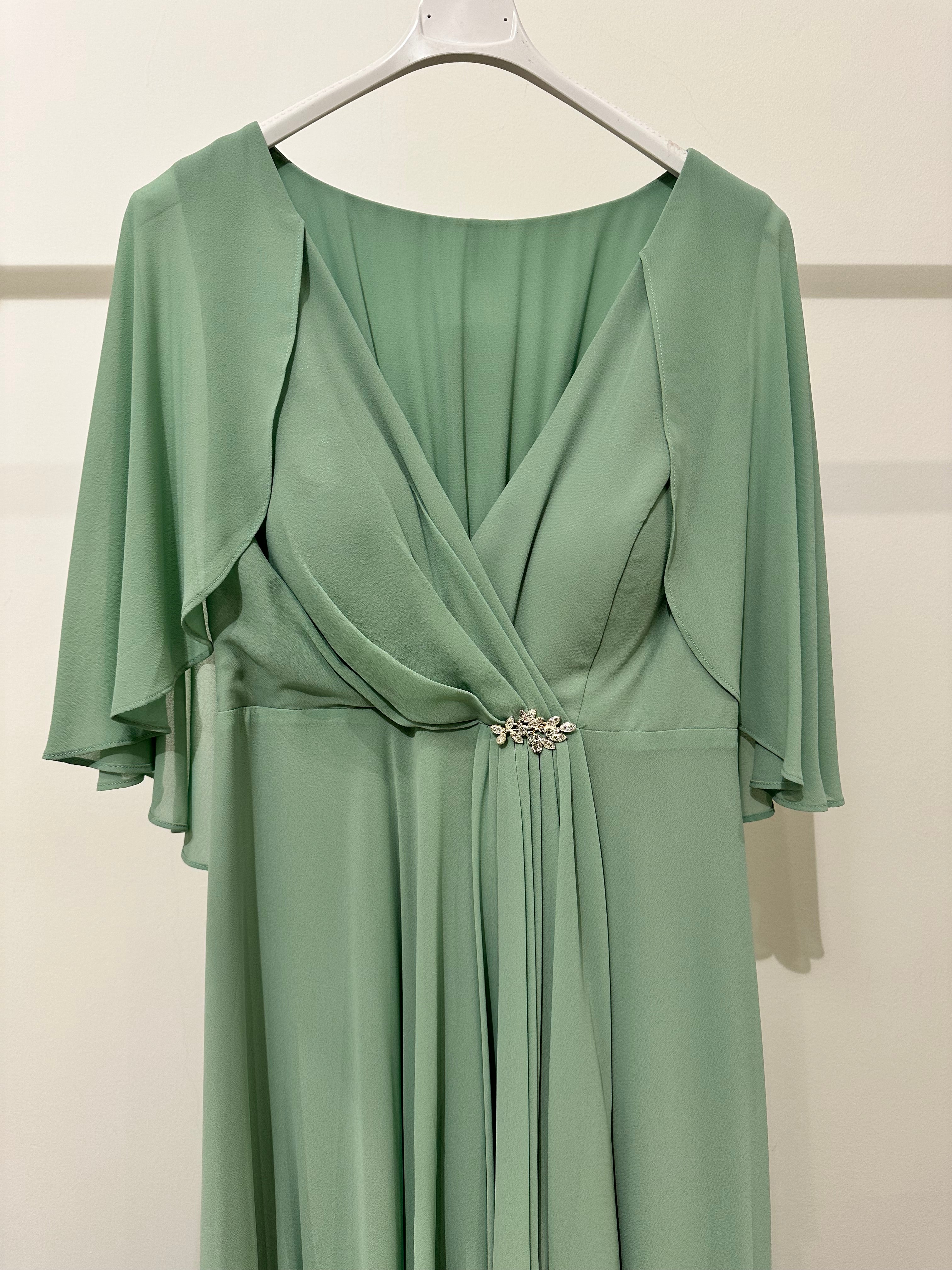 Abito cerimonia maxi scollo V spilla