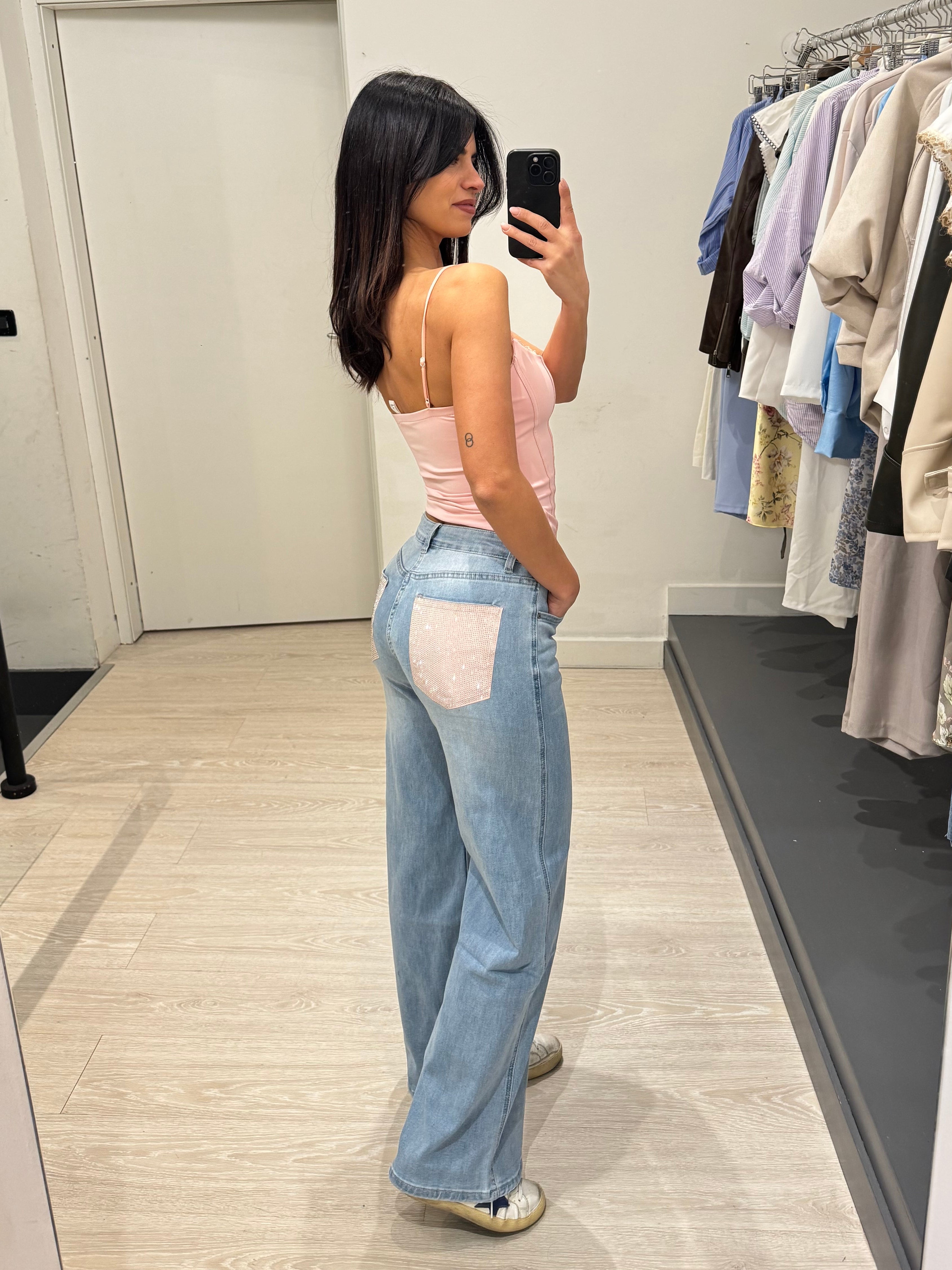 Jeans palazzo tasche strass